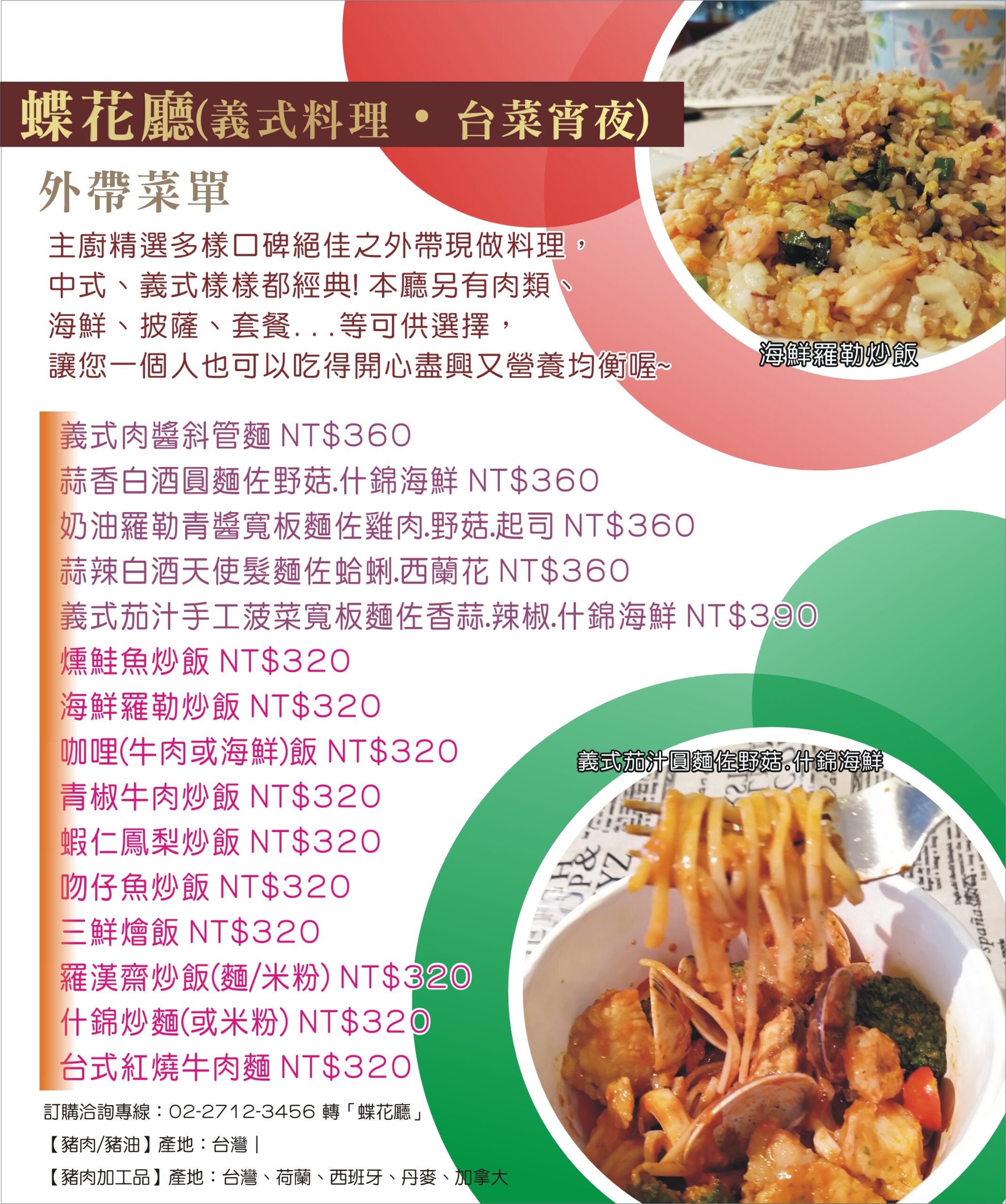 ※ 預訂/查詢電話:(02)2712-3456 轉 蝶花廳。